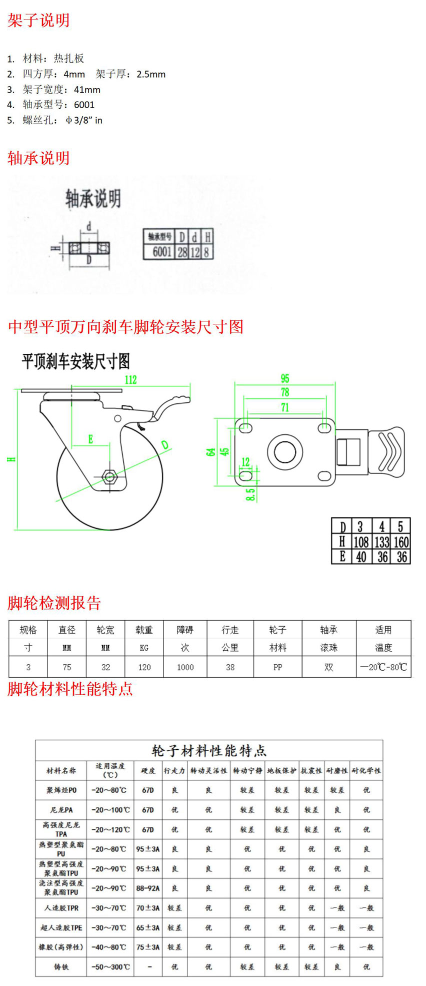 中(zhōng)型(xíng)5寸萬向帶刹車(chē)腳輪