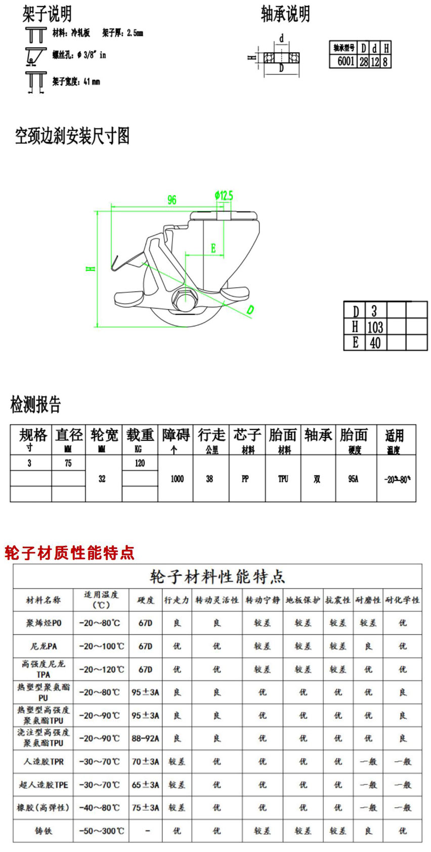 3寸中型空頸側刹腳輪產品詳情