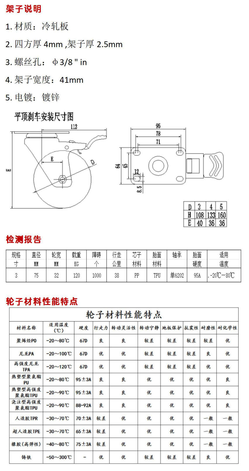 3寸中型萬向帶刹車單軸承腳輪產品詳情