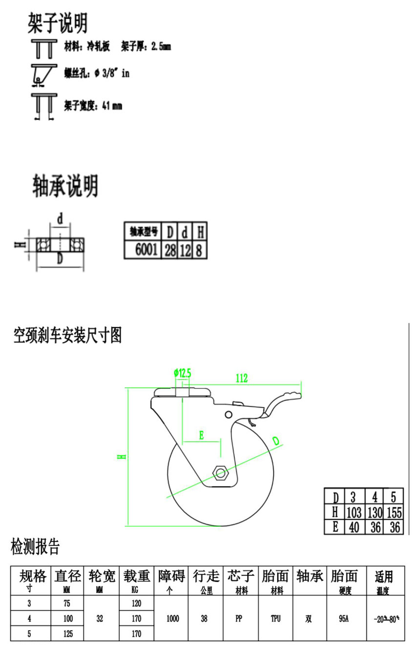 中型4寸空頸(jǐng)萬向帶刹車腳輪