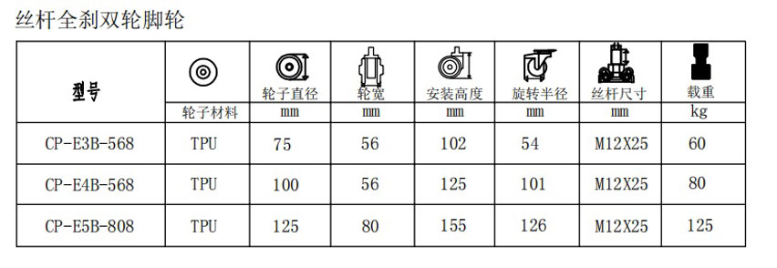 絲杆(gǎn)全刹(shā)雙輪腳輪