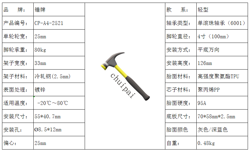4寸輕型TPU萬(wàn)向腳(jiǎo)輪產品詳情