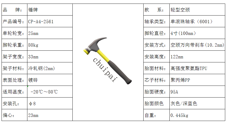 4寸輕型空頸TPU萬向帶刹車腳輪產品詳情
