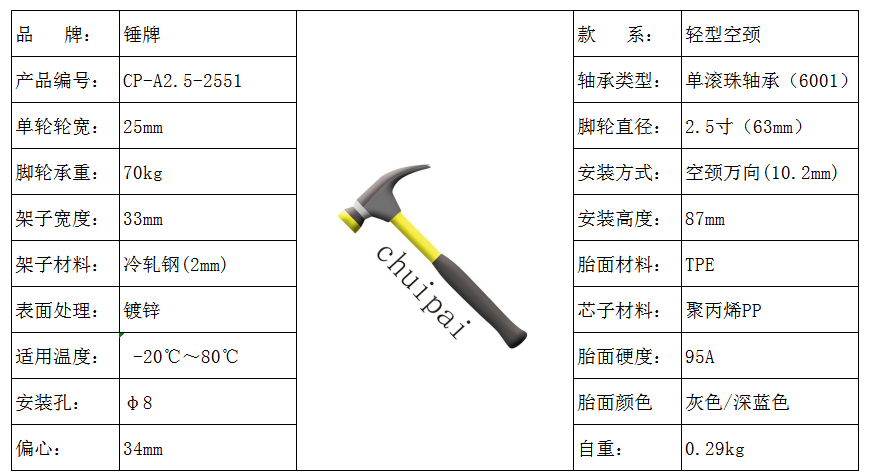 2.5寸輕型空頸TPE萬向(xiàng)腳輪產(chǎn)品詳情