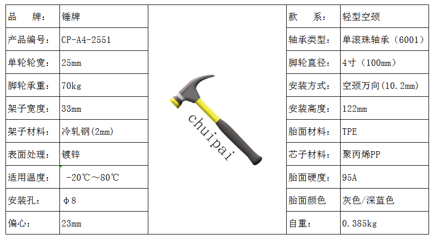 4寸輕型空頸TPE萬向腳輪產品(pǐn)詳情