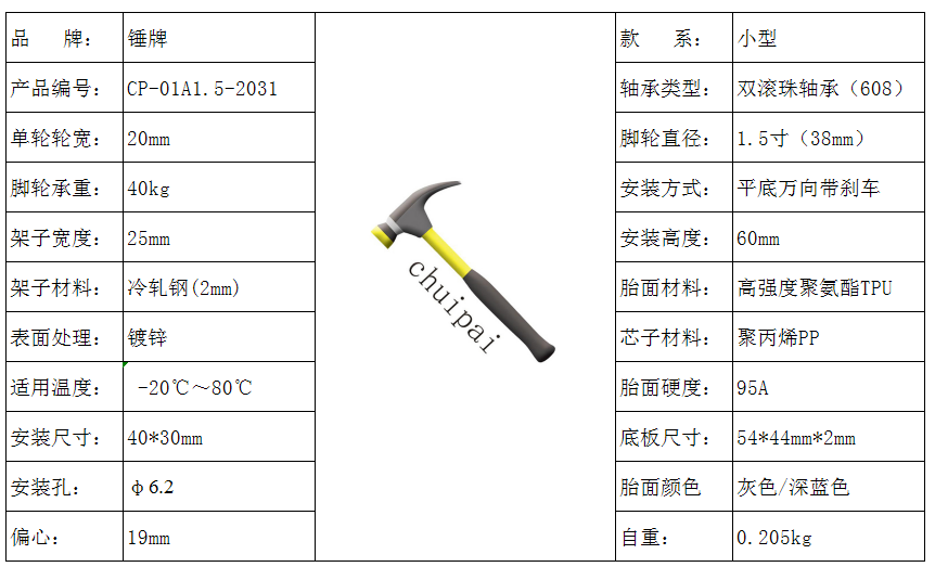 1.5寸(cùn)小(xiǎo)型TPU万向带刹车脚轮产品详情
