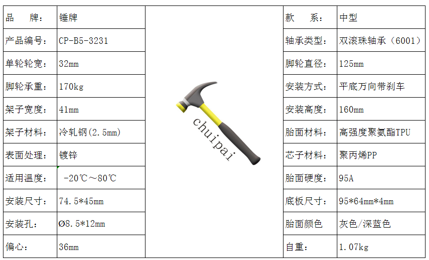 5寸中型TPU萬向帶刹車腳(jiǎo)輪產品詳情
