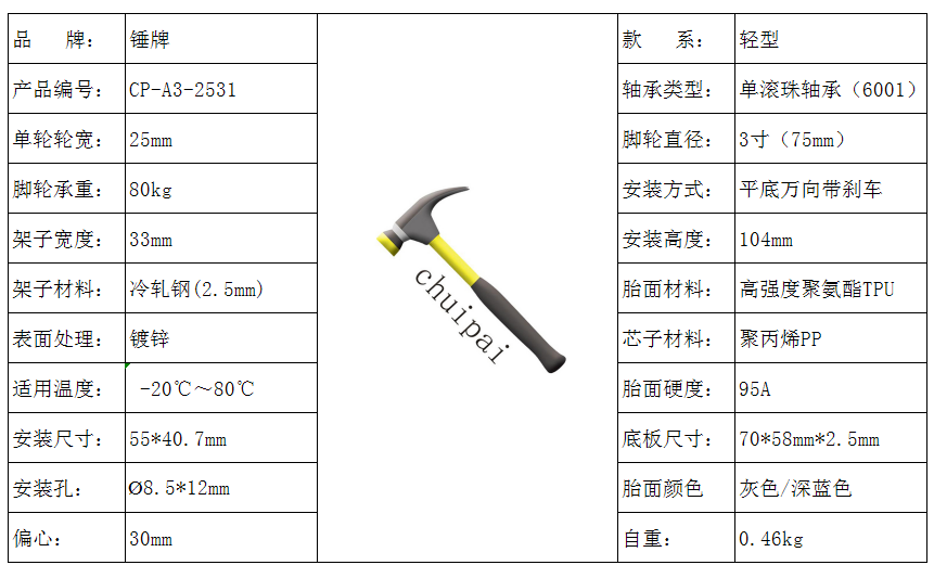 3寸輕型TPU萬向腳輪(lún)產(chǎn)品詳情